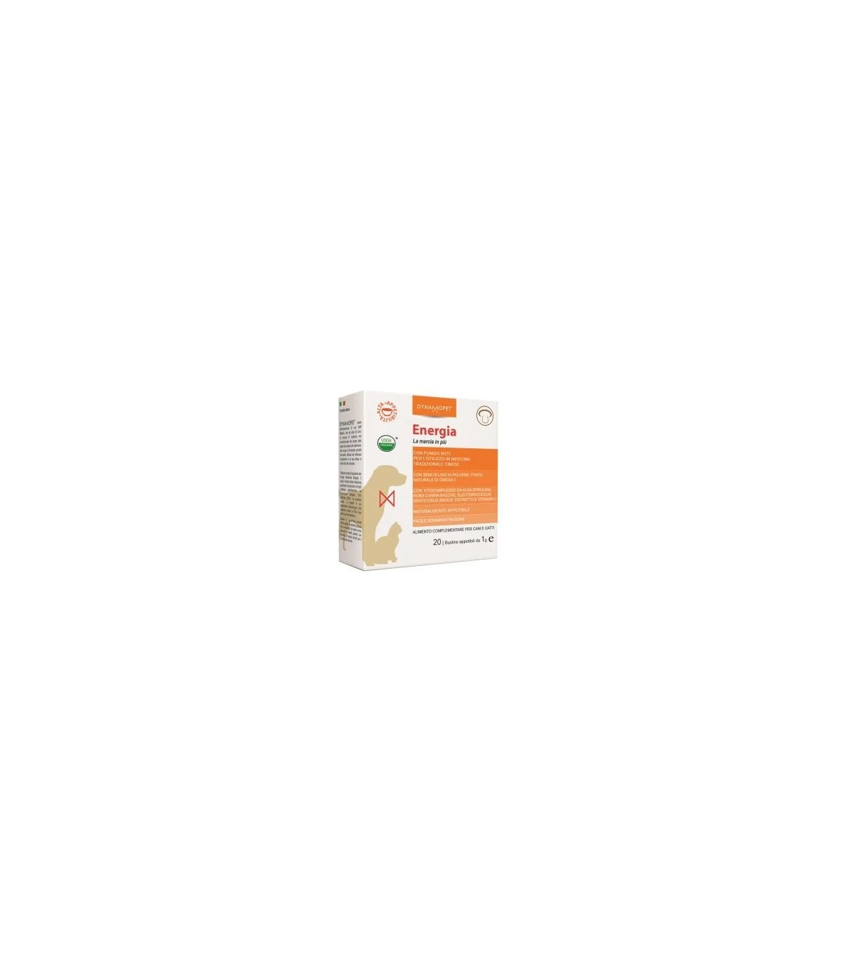 Energia è un alimento complementare sviluppato per animali sportivi, sostiene le fisiologiche funzioni dell’organismo durante i periodi di intenso lavoro e stress psico-fisico. La presenza di funghi noti per l’utilizzo in Medicina Tradizionale Cinese, di Eleuterococco, specie botanica dalla tradizionale azione tonica-adattogena, e di alga spirulina, ricca in amminoacidi essenziali, per una fisiologica azione di sostegno, rende il prodotto un prezioso alleato per l’energia dell’organismo. Il contenuto in Vitamina C ed in rosa canina, fonte naturale della stessa vitamina, contribuisce ad utilizzare al meglio i costituenti attivi contenuti nei funghi. Naturalmente appetibile. Facile somministrazione. ALIMENTO COMPLEMENTARE PER CANI E GATTI.