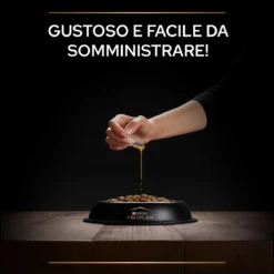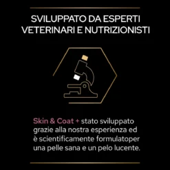 Pro Plan Supplements Skin & Coat + è un alimento complementare per cani adulti di tutte le taglie che nutre la pelle e il pelo del tuo cane in modo completo perché contiene nutrienti essenziali come gli acidi grassi Omega-3 e Omega-6 provenienti da salmone Norvegese, olio di semi di lino e vitamina E.
