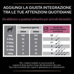 Razione giornaliera raccomandata (g/giorno): Peso del cane (kg) | Quantità (in cucchiaio)