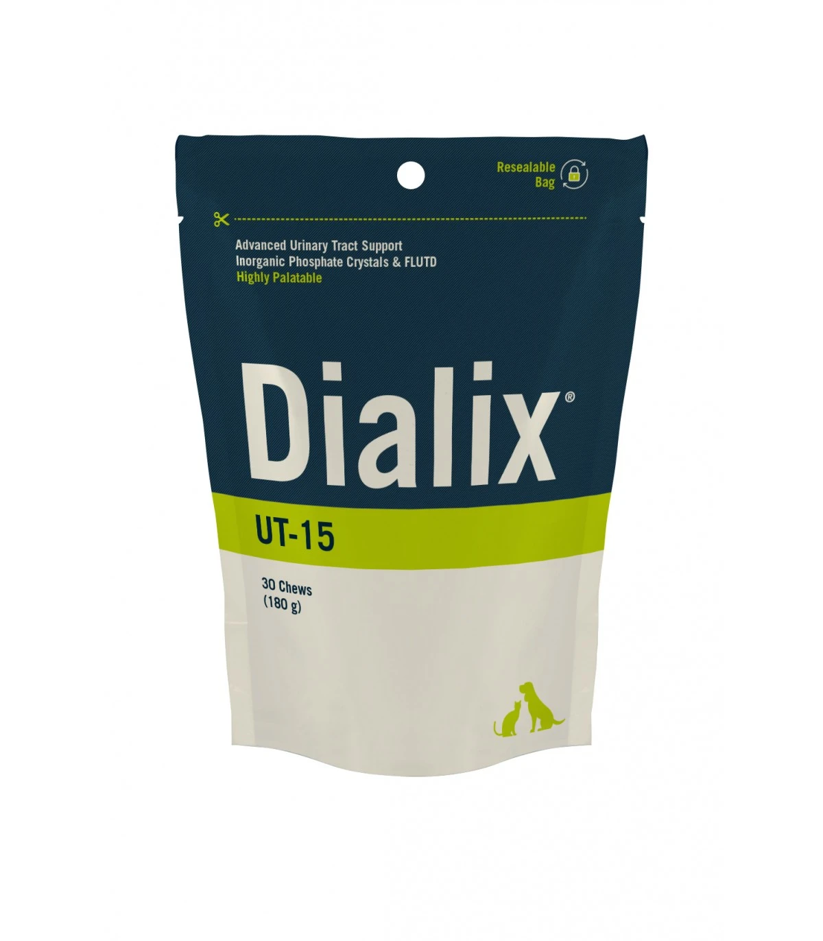 Dialix® UT-15 è un Mangime Complementare per Aiutare a Diminuire il pH Urinario, Aumentare il Volume delle Urine e Ridurre la Concentrazione di Sostanze in Sospensione.